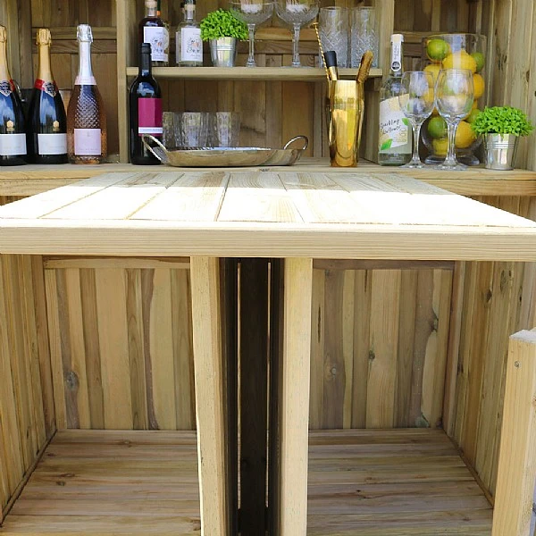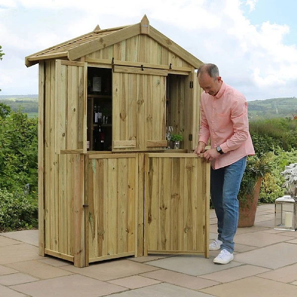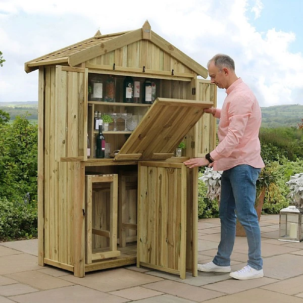 - The new Garden bar is quick and easy to set-up by simply opening the two main storage doors to make a sturdy base for the fold-down counter which acts as a bar.